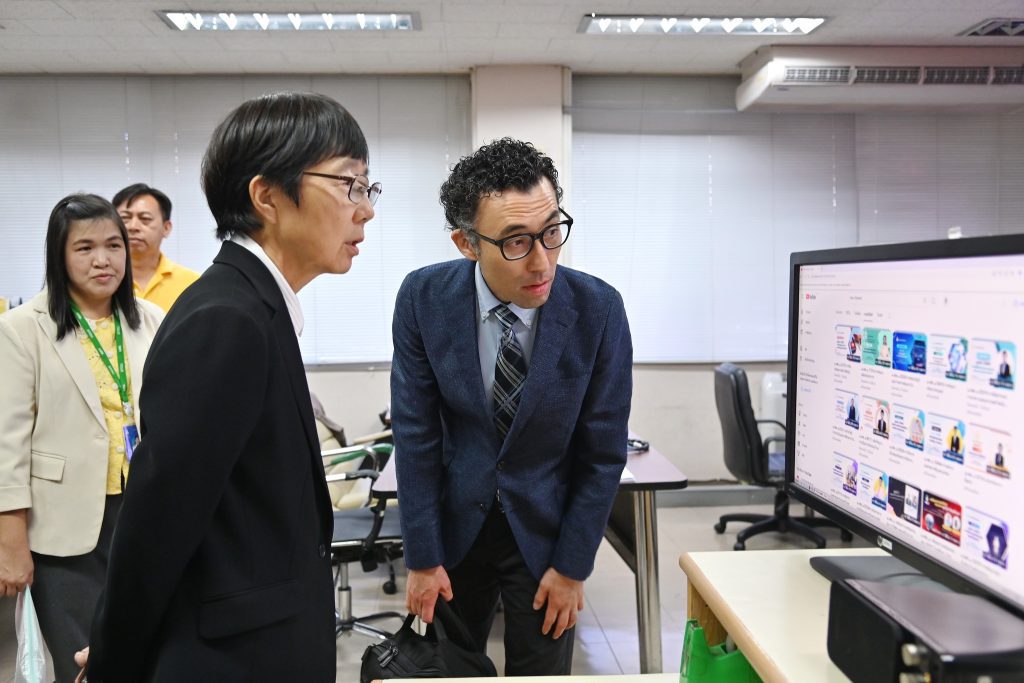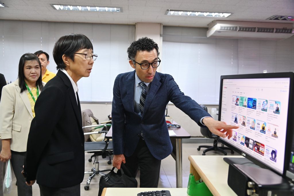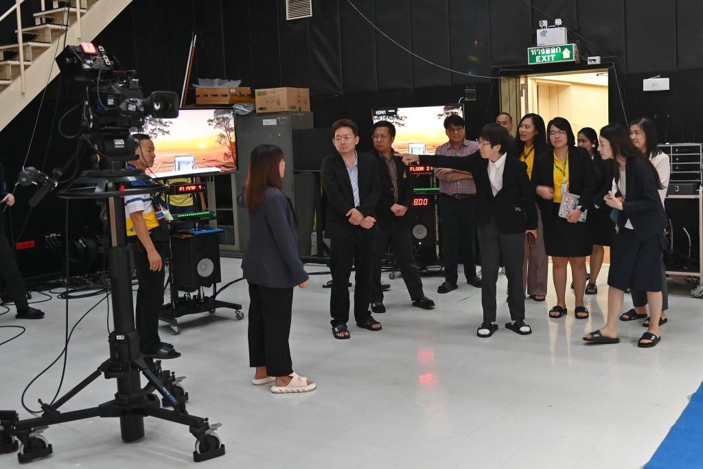 คณาจารย์สาขาวิชาเกษตรศาสตร์และสหกรณ์ และสถานวิเทศสัมพันธ์ ได้นำคณะผู้บริหารจาก Chiba University ประเทศญี่ปุ่น เข้าเยี่ยมชมอาคารผลิตรายการวิทยุโทรทัศน์เพื่อการศึกษา (EBPC) ในการนี้ได้ ผู้ช่วยศาสตราจารย์ ดร.วชิระ พรหมวงศ์ และทีมงานบุคลากรสำนักเทคโนโลยีการศึกษา นำชมและให้ความรู้ต่างๆ เกี่ยวกับการผลิตรายการโทรทัศน์และอุปกรณ์ต่างๆ